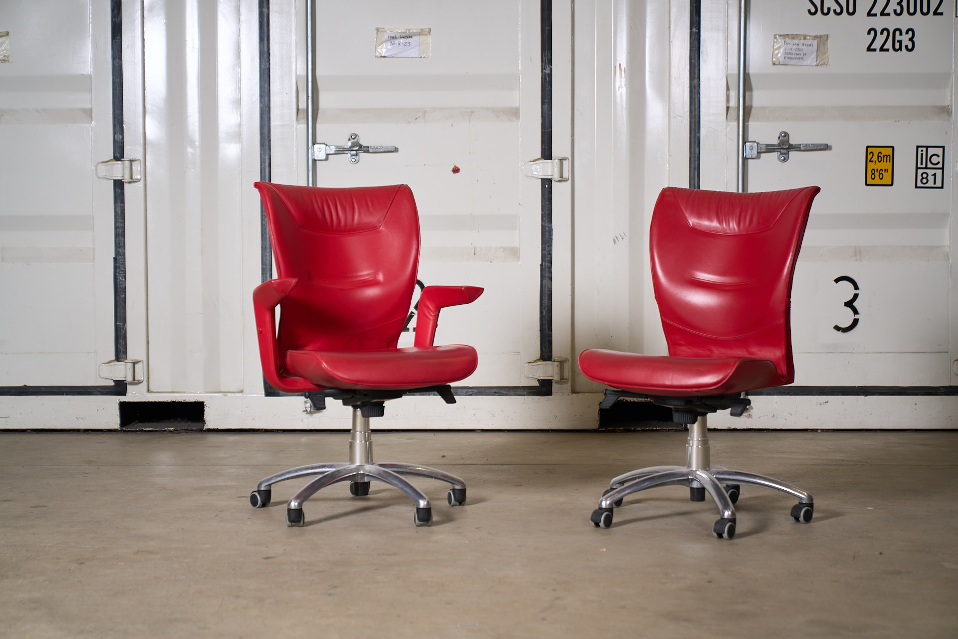 2 st. bureau stoelen model Brief in rood leer (gebruikt)
