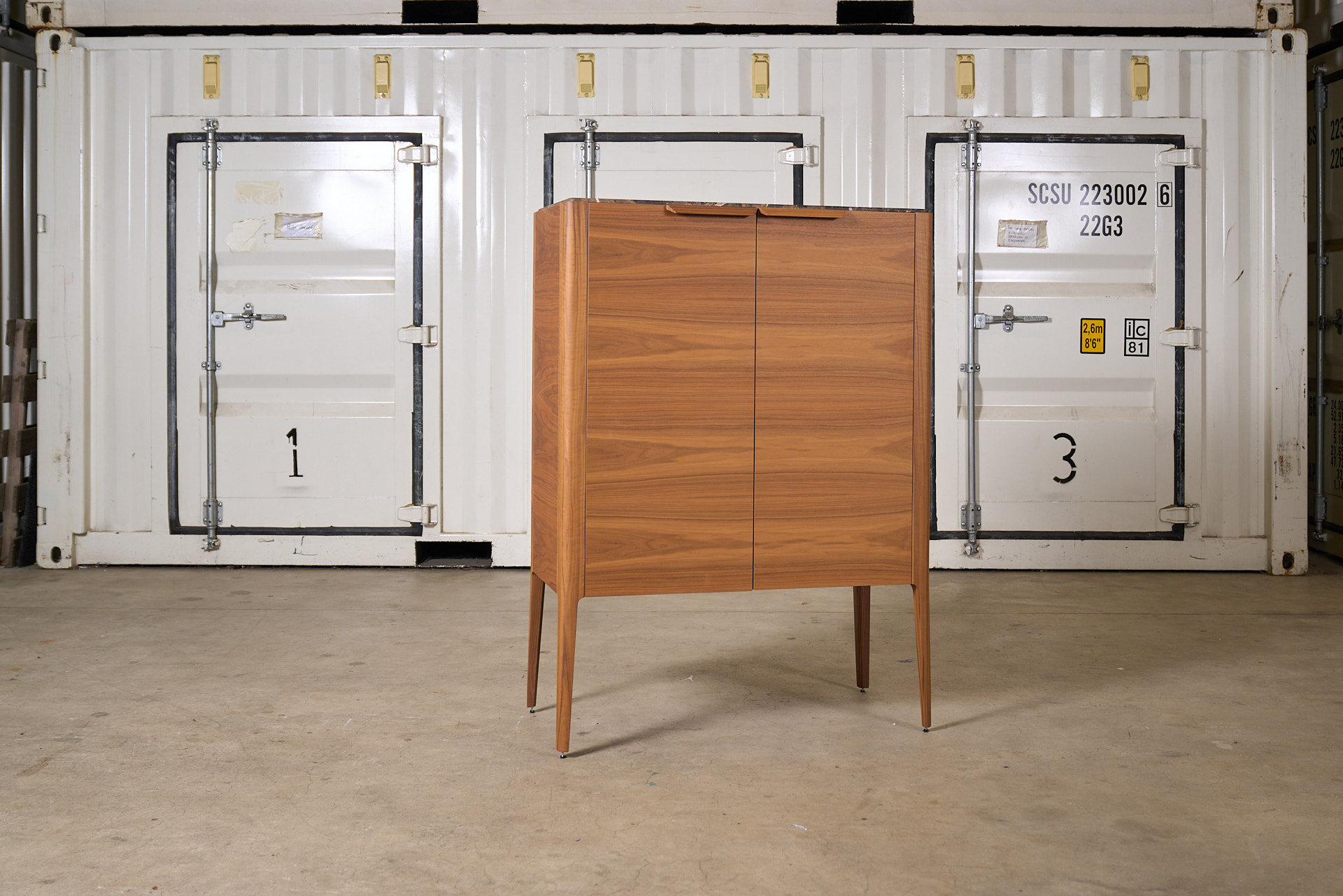 dressoir model Atlante notenhout met marmeren top 113 cm X 53 cm X h. 151 cm